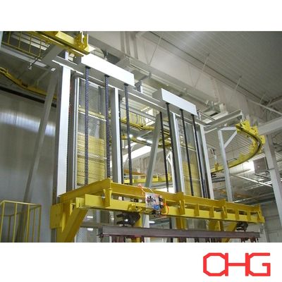 이 엘리베이터는 완성 된 제품 들 을 수동 으로 배하 하는 데 도움 이 되기 위해 다시 내려간다. 그 후 코팅 된 제어 캐비닛 들 은 검사, 조립, 또는 포장 하기 위해 준비 된다.