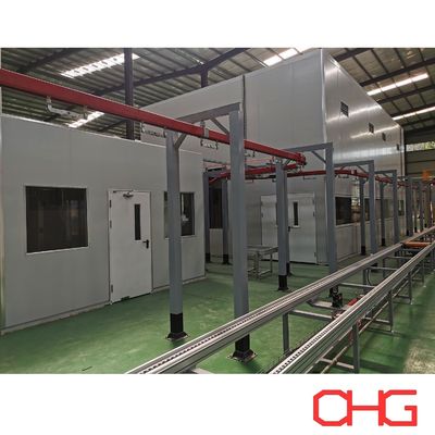 전처리 섹션은 무거운 캐비닛 부품의 안정적인 운송을 위해 스키드형 지면 컨베이어 시스템을 활용하며, 분체 스프레이 및 경화 섹션은 코팅 균일성과 생산 효율성을 보장하기 위해 일정한 속도로 작동하는 오버헤드 컨베이어 시스템을 채택합니다.